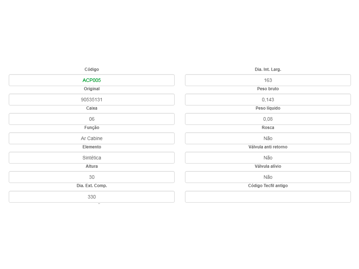 Filtro de cabine Corsa 02 e Montana 03 TECFIL ACP005