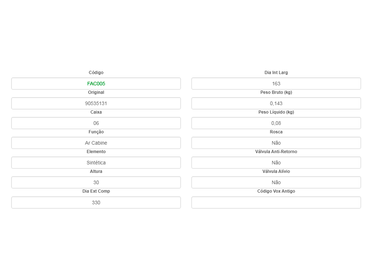 Filtro De Cabine Corsa 02> E Montana 03> Vox Fac005