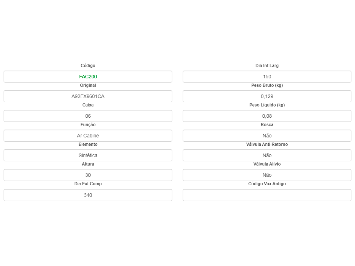 Filtro De Cabine Courier E Escort 97>, Fiesta 97/02 E Ka 97/14 Vox Fac200