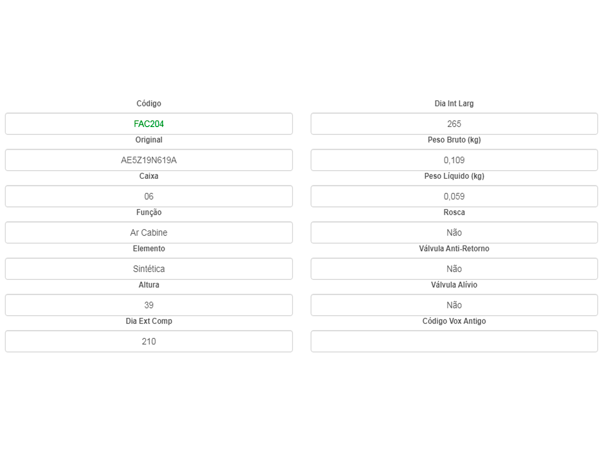 Filtro De Cabine Ford Fusion 09/12 Vox Fac204