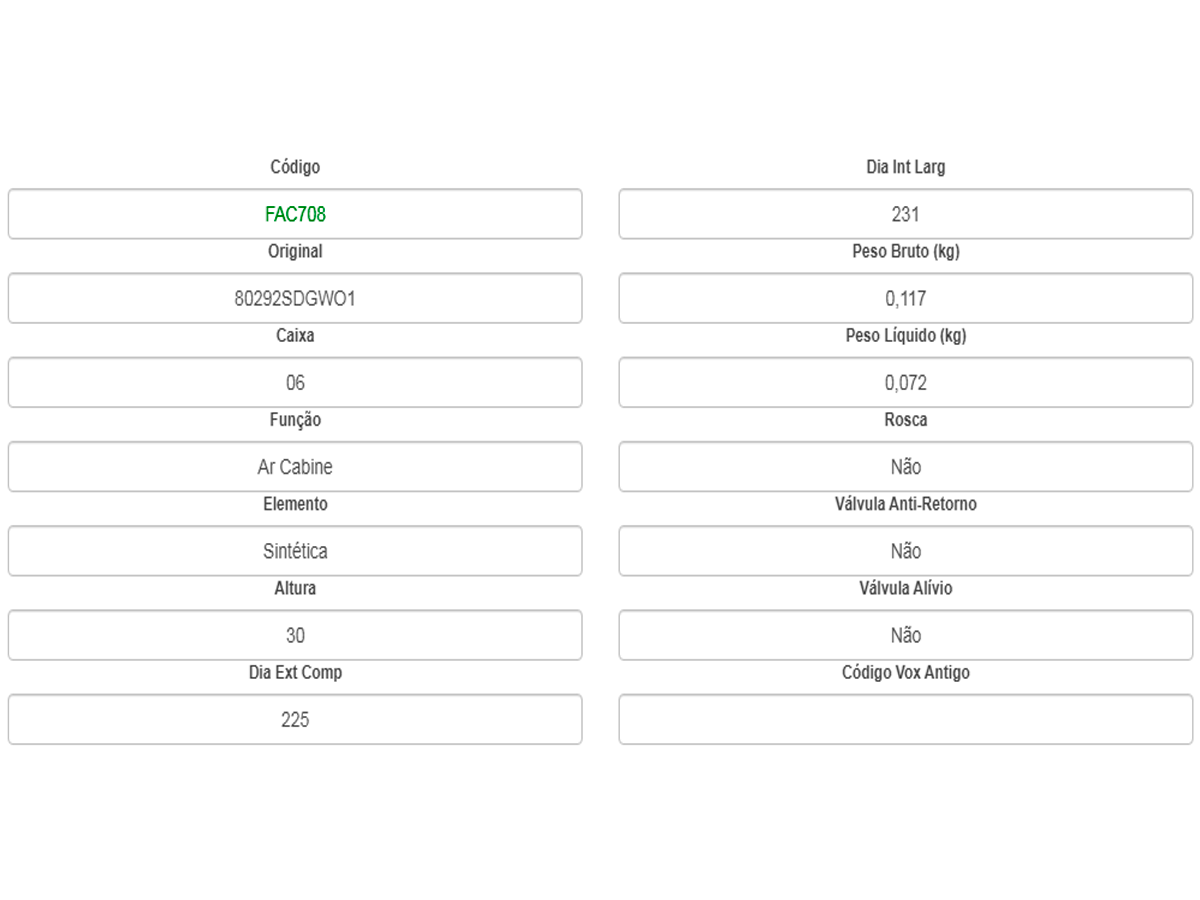 Filtro De Cabine Honda Accord E Cr-v 08> E Civic 06> Vox Fac708
