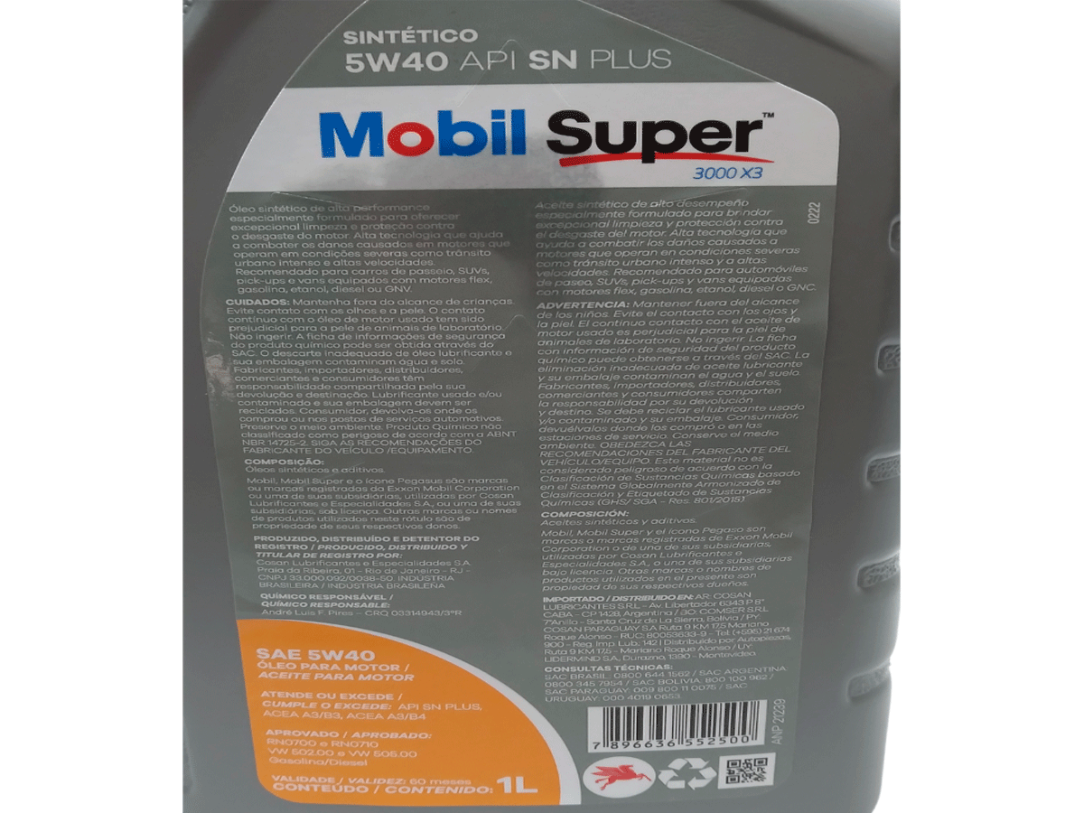 Óleo Lubrificante Sintético Mobil Sae 5w-40 - 1 Litro
